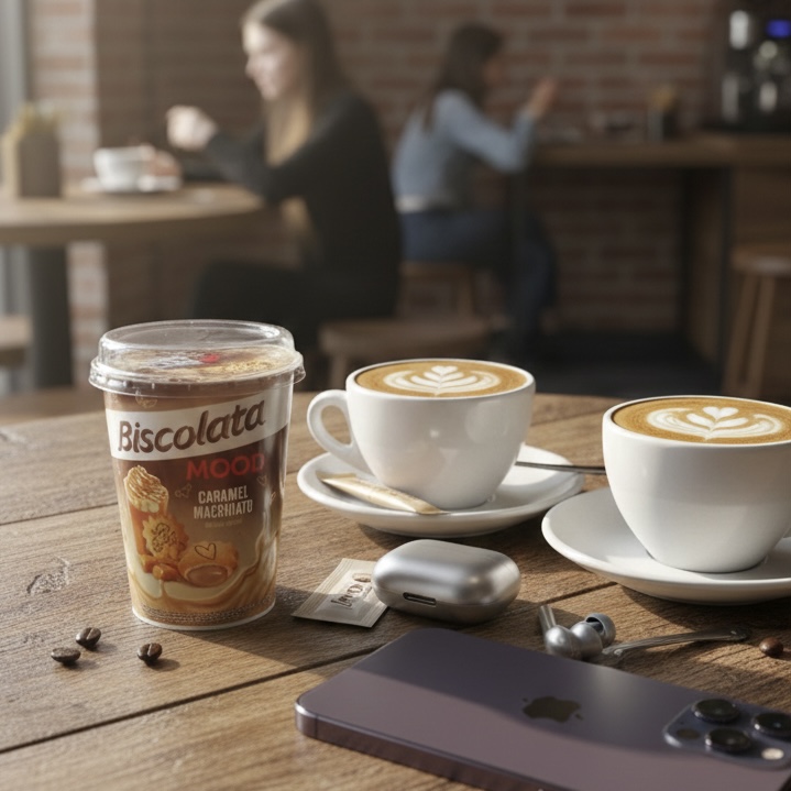 ویفر با کرم کارامل ماکیاتو لیوانی بیسکولاتا