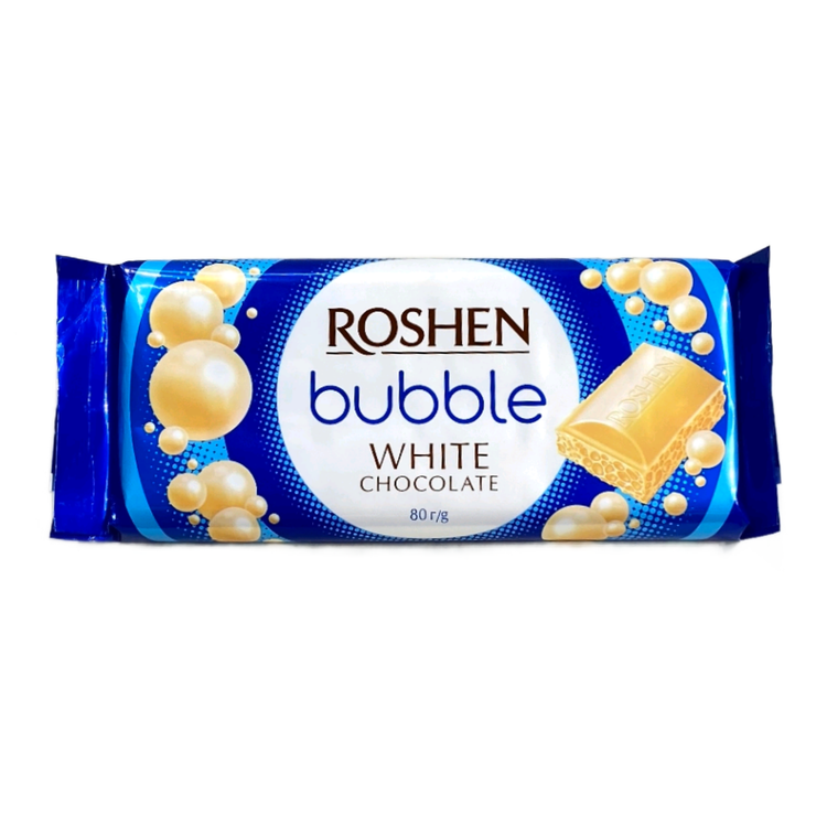 شکلات شیری با حبابهای هوا – شکلاتهای Roshen Bubble بهطور خاص دارای حبابهای هوا درون شکلات هستند که بافتی نرم و سبک ایجاد میکند. این حبابها هنگام خوردن شکلات، احساس سبکی و لطافت بیشتری به مصرفکننده میدهند.