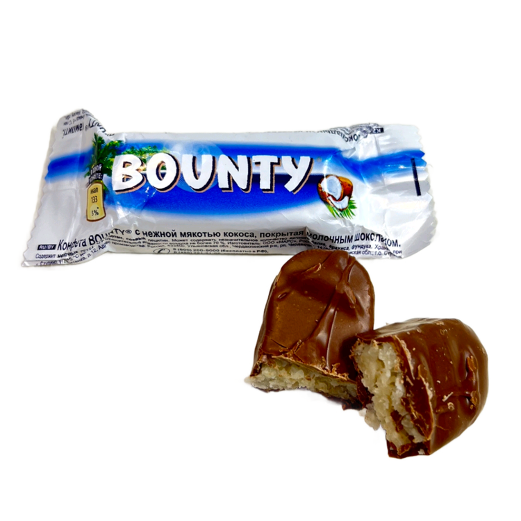 Bounty Milk Chocolate – با روکش شکلات شیری که طعمی ملایم و خامهای دارد.