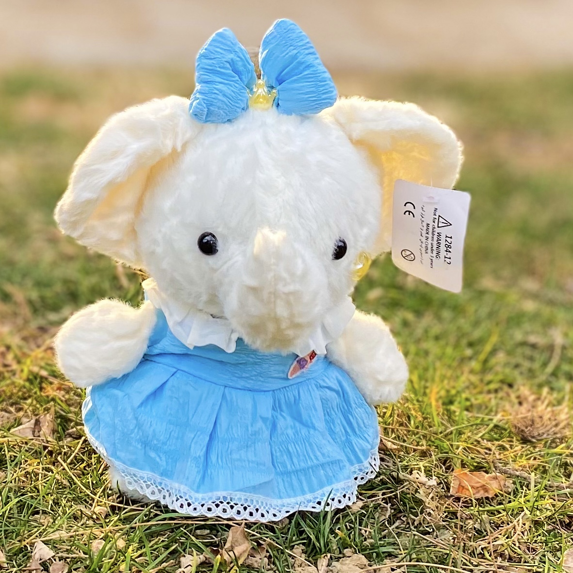 این ست شامل دو عروسک فیل است — یکی دختر با لباس و پاپیون فانتزی و دیگری پسر با تیپ جذاب — که کنار هم ظاهری بسیار دلنشین دارند.