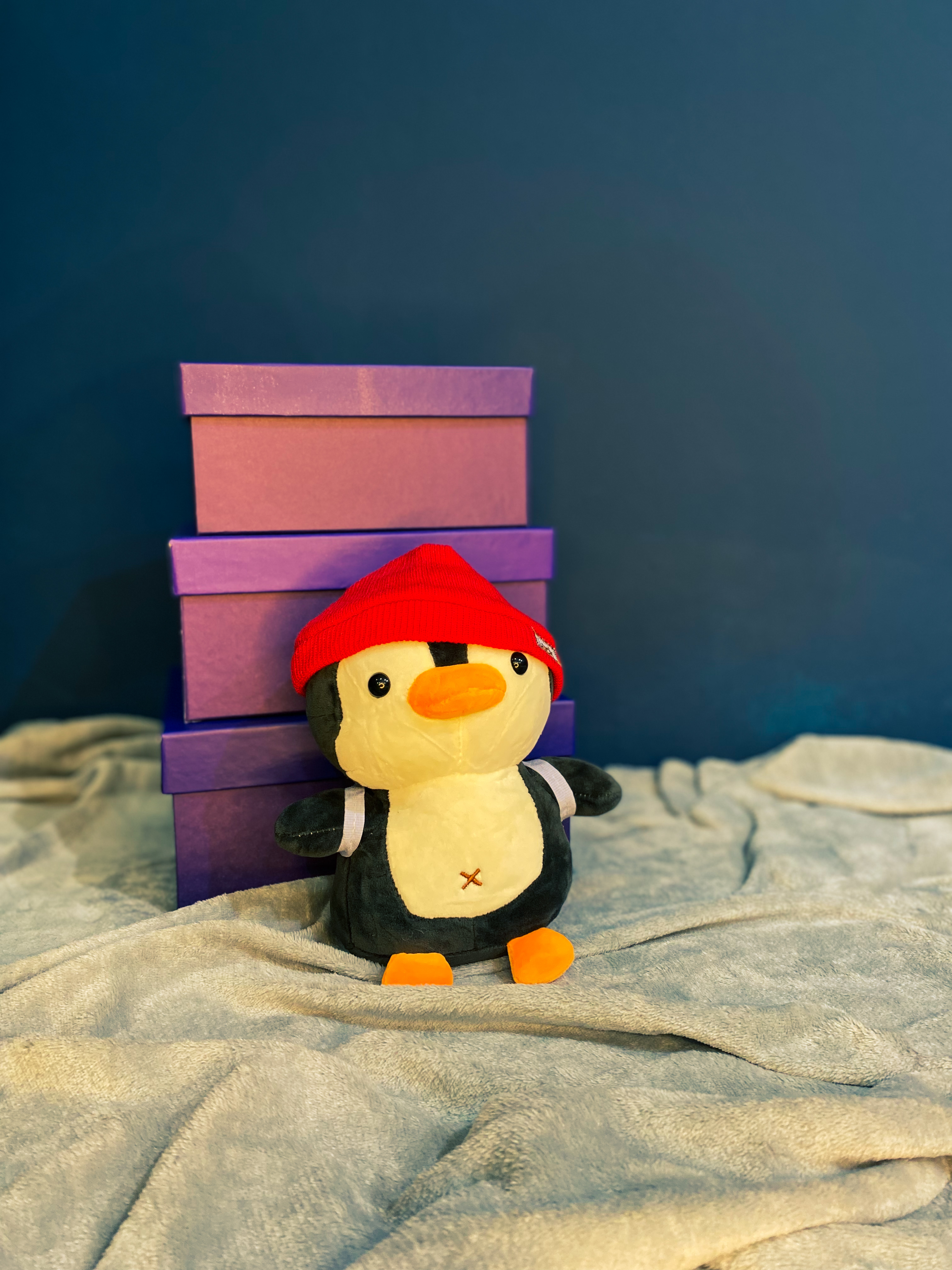 عروسک پنگوئن کلاهدار (Penguin Plush with Hat) یکی از جذابترین و پرطرفدارترین مدلهای عروسک فانتزیه که با ظاهری تپل، چهرهای مهربون و کلاهی ناز روی سرش، حسابی دلبره! 💙